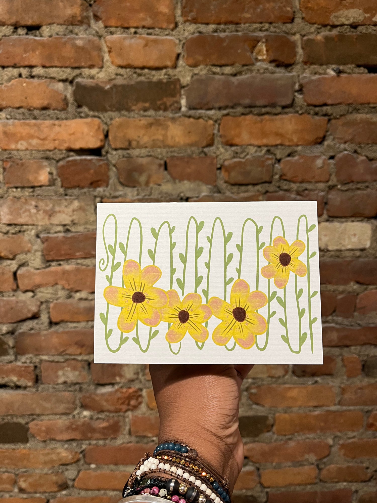 The newest in the Simple Floral collection, this original Heavy Set Stationery Co design, “Sunny Yellows”, is a simple floral design for any occasion. Printed on 120 pound double thick recycled solar white paper.